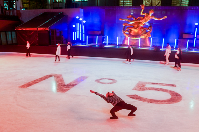 From the bustling location of Rockefeller Center to an intimate private balcony on Fifth Avenue, Ice Theatre of New York can perform anywhere. Using its sheets of synthetic ice, Ice Theatre can provide artistic performances for corporate events, product launches, movie openings and private weddings.